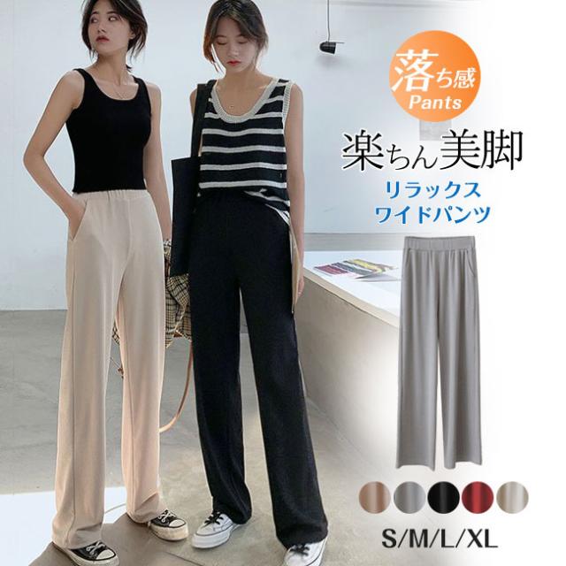 ガウチョパンツ ワイドパンツ ゴムウエスト レディース ゆったりボトムス ストンとした落ち感 パンツ リラックス ボトムス 大きいサイズ ゆったり カジュアル ギフト
