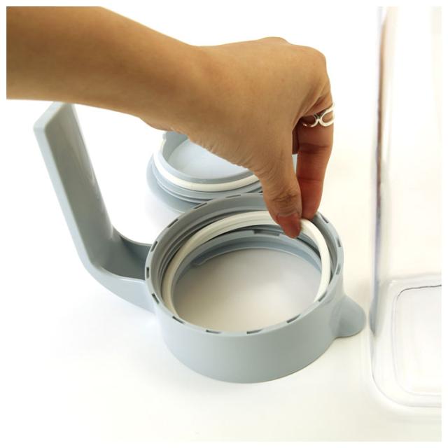 | 注意点 | ※熱湯を入れた場合は、室温程度に冷めるまでネジ栓を閉めないでください。また、お水などで容器を急激に冷やしたり、容器を持ち上げたり、移動させたりしないでください。内気圧が高まり変形や破損する恐れがあり、ケガやヤケドの原因となります。 ※容器を手に持って熱湯を注ぐのはお止めください。 ※本製品は冷水筒です。本来の用途以外にはご使用にならないでください。 ※火のそばなど、高温になる場所には置かないでください。 ※電子レンジ、食器洗浄機、食器乾乾燥機は使用しないでください。 ※製氷器として使用しないでください。 ※酒・アルコール類・炭酸飲料・発酵飲料・酸性・アルカリ性のものは入れないでください。 ※フタ・ネジ栓の開閉は確実に行ってください。 ※持ち運びの際は、必ずハンドルを持って移動してください。 ※ハンドル部を持って振り回さないでください。フタが外れたり、落下や破損の原因になることがあります。 ※本体に強い衝撃を与えないでください。破損の原因になります。衝撃により本体が白く濁った場合には液漏れする恐れがあります。 ※フタやネジ栓を必要以上に閉めますと、パッキンが部分的にずれてしまうことがありますが、取り外してしばらく放置すると元に戻ります。 ※パッキンが正しい位置に取り付けられていなかったり、ねじれている場合、または劣化によって止水性がなくなりますと、内容物が漏れることがあります。漏れないことを確認の上ご使用ください。 ※カメラやモニターの性質により、画像と実物の色の違いがある場合がございますのでご理解願います。 |