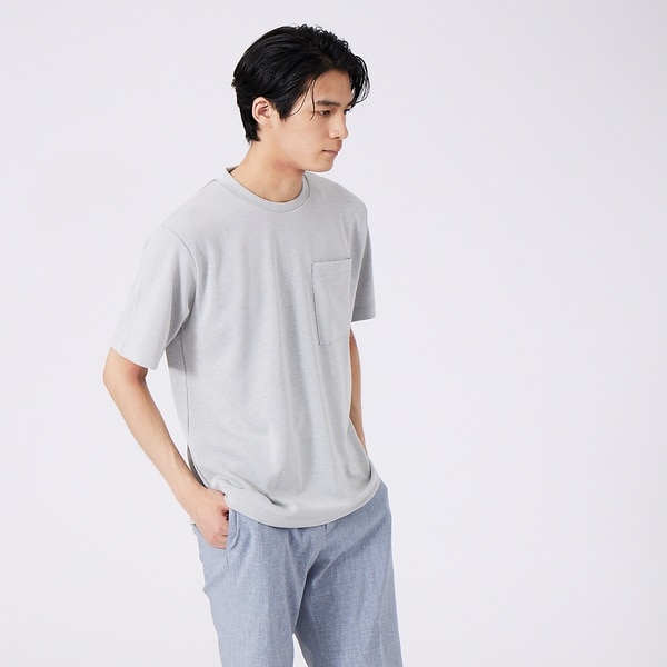 ベーシックなデザインのクルーネックTシャツに、カットオフポケットをあしらった一枚。