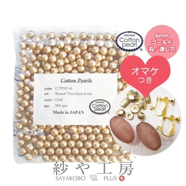 【送料無料】 コットンパール ゴールド 6mm 300個 おまけ付 新興真珠 新興パール 日本製 コットン 綿 パール パーツ 丸 両穴 通し穴 丸玉 ハンドメイド ハンドメイドパーツ 問屋 手作り 材料 クラフト 金 まとめ買い