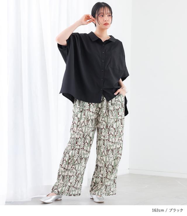 | staff:A/156.5cm 【普段着用】 トップス: L/LL ボトムス: L/LL | ◆袖丈:肘位 ◆着丈:ヒップの下が見える位 涼しい生地感で、ゆったりと余裕をもって着られました。 |