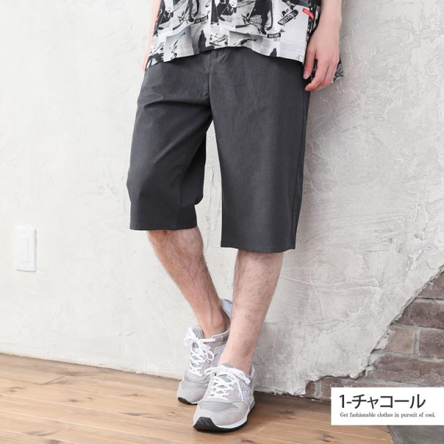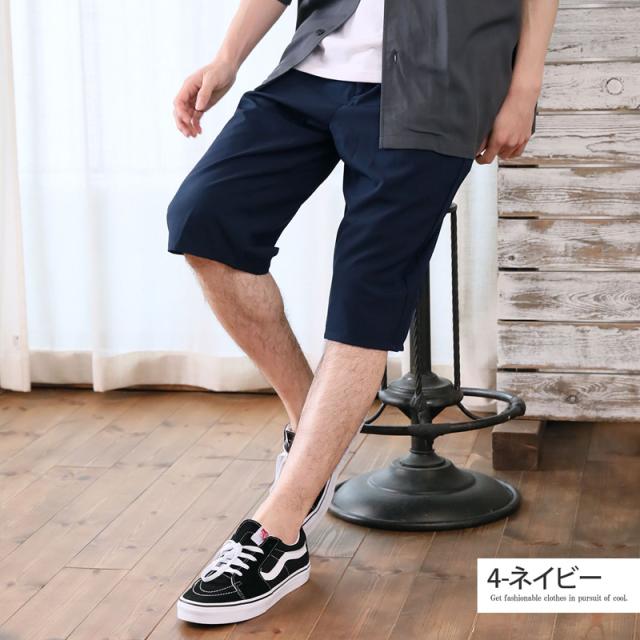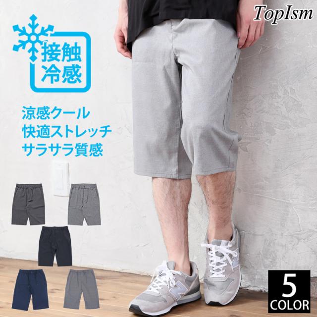 接触冷感 メンズ ハーフパンツ 伸縮 ストレッチ クロップドパンツ ショートパンツ クール COOL 涼しい 冷たい ウエストゴム M/L/LL 通販 新作 人気 春 夏 送料無料 M L LL 父の日 ゆうパケ
