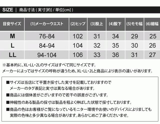 メーカーによってはサイズの呼称が違うため、XL・LL・2Lと商品により表示の違いがあります。