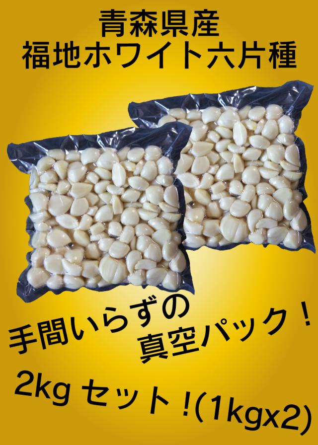 むきにんにく 2kg(1kgx2パック)青森県産 福地ホワイト六片 国産 クール便 真空パック 送料無料(沖縄・離島を除く)