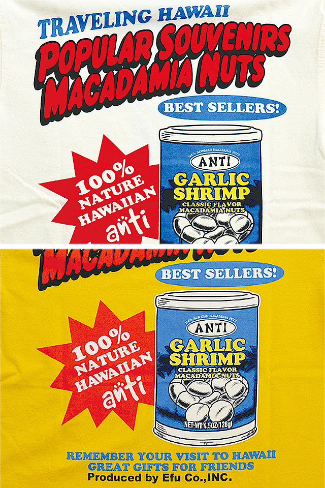 南国ハワイの伝統的な正装アロハシャツにテーマを見いだし、図柄をアレンジし落とし込んだ「ANTI」から「ハワイのお土産半袖Tシャツ(ATT-159)」のご紹介です。 ハワイのお土産マカデミアナッツを落とし込んだ半袖Tシャツがリリース。 生地には、肌触りの良いANTIさんお馴染みのよれにくいタフなボディーを採用。 | |||||||||||||||||||||||||