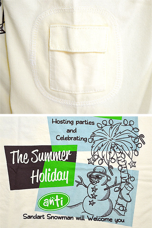 背中には、南国アレンジのクリスマスツリーと雪だるまをレトロなアートでプリント。