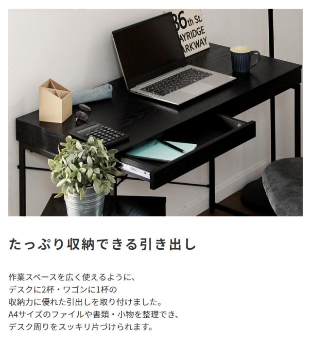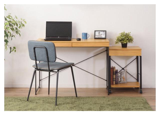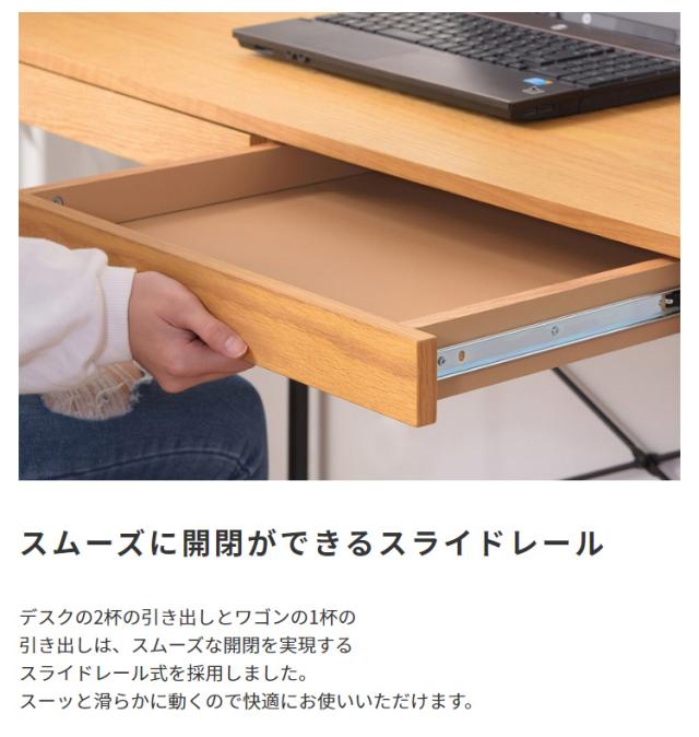 スチールx木目 引出し付きデスク 2色展開 ナチュラル ブラック デスク ワゴン 机 学習机 スライドレール式 スチール脚 パソコンデスク 一人暮らし リビング