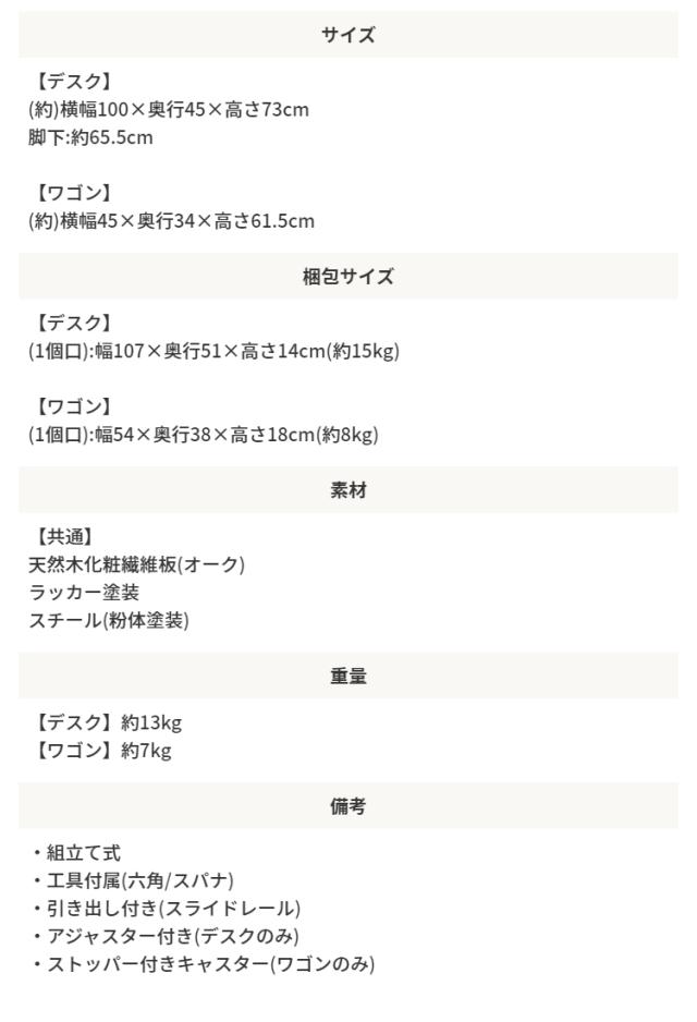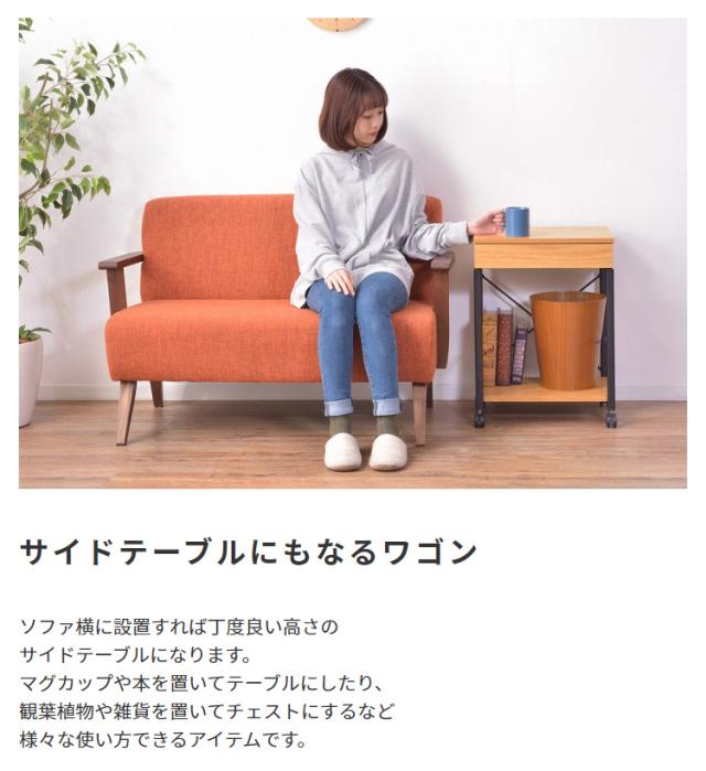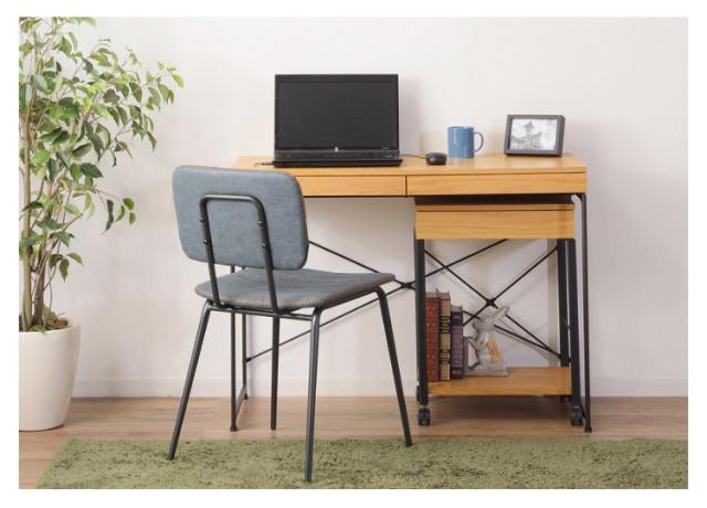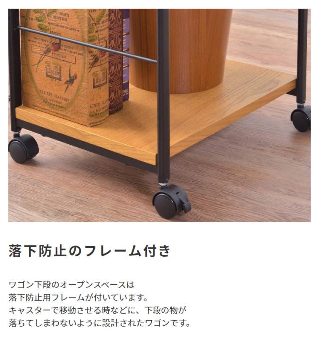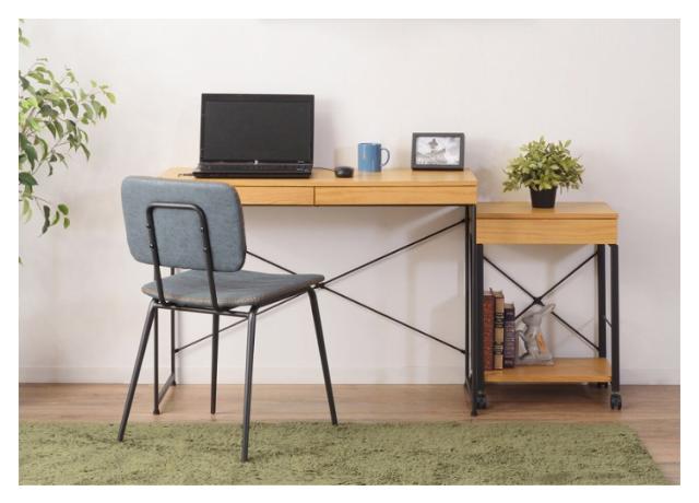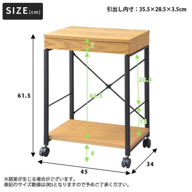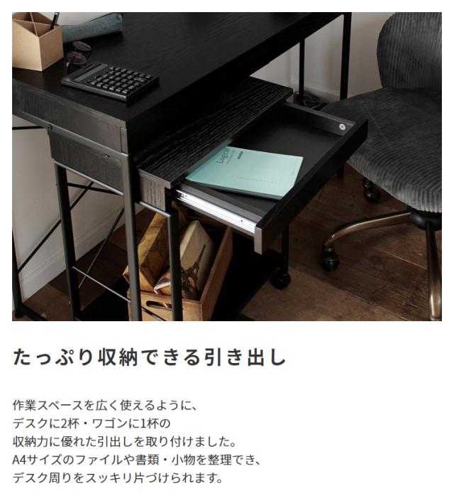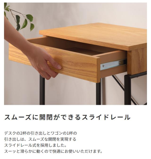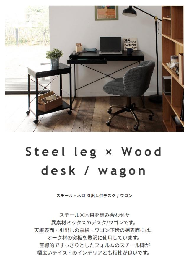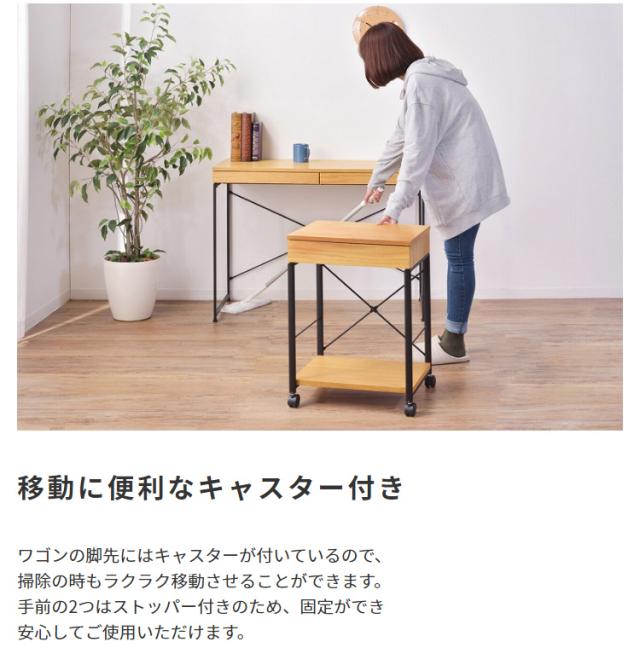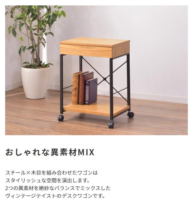 スチールx木目 引出し付きワゴン 2色展開 ナチュラル ブラック ワゴン キャスター付き 机 学習机 スチール脚 サイドテーブル 一人暮らし リビング