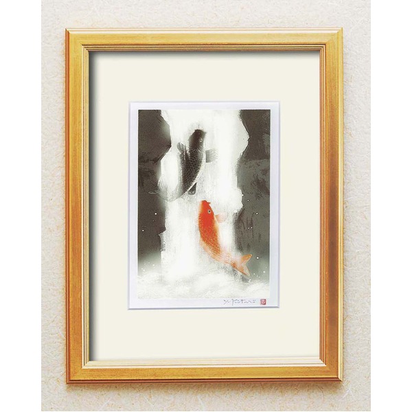 風水額 太子 ゴールド 吉岡浩太郎 「夫婦滝昇り鯉」 シルク版画 額縁 額 フレーム