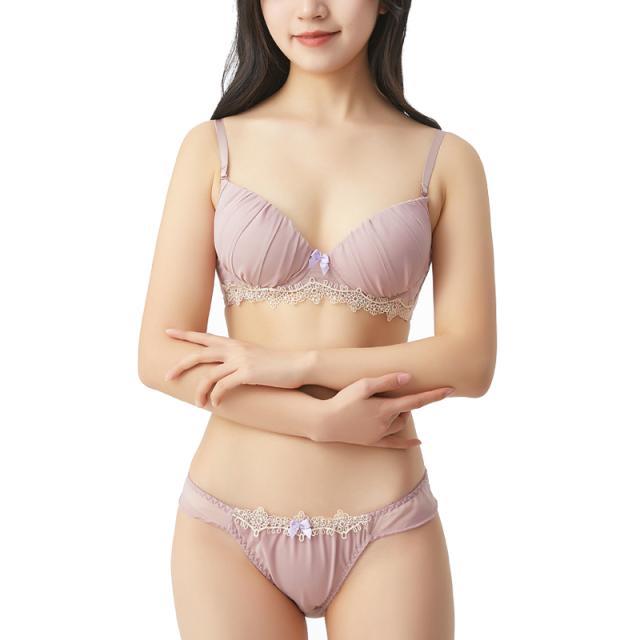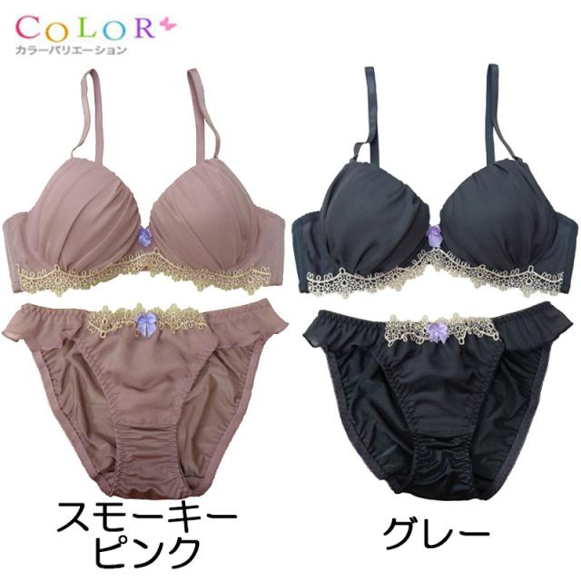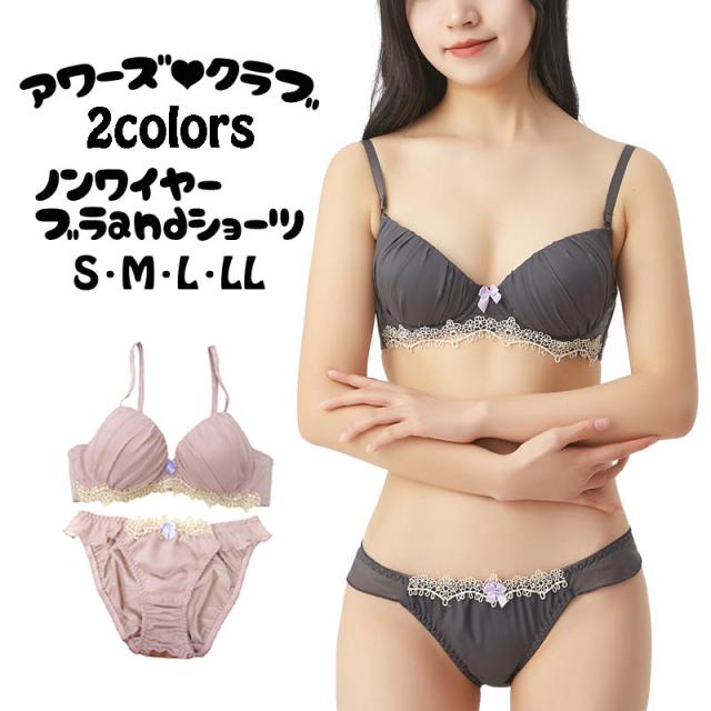 スモーキーカラーのかわいいノンワイヤーブラジャー&ショーツ