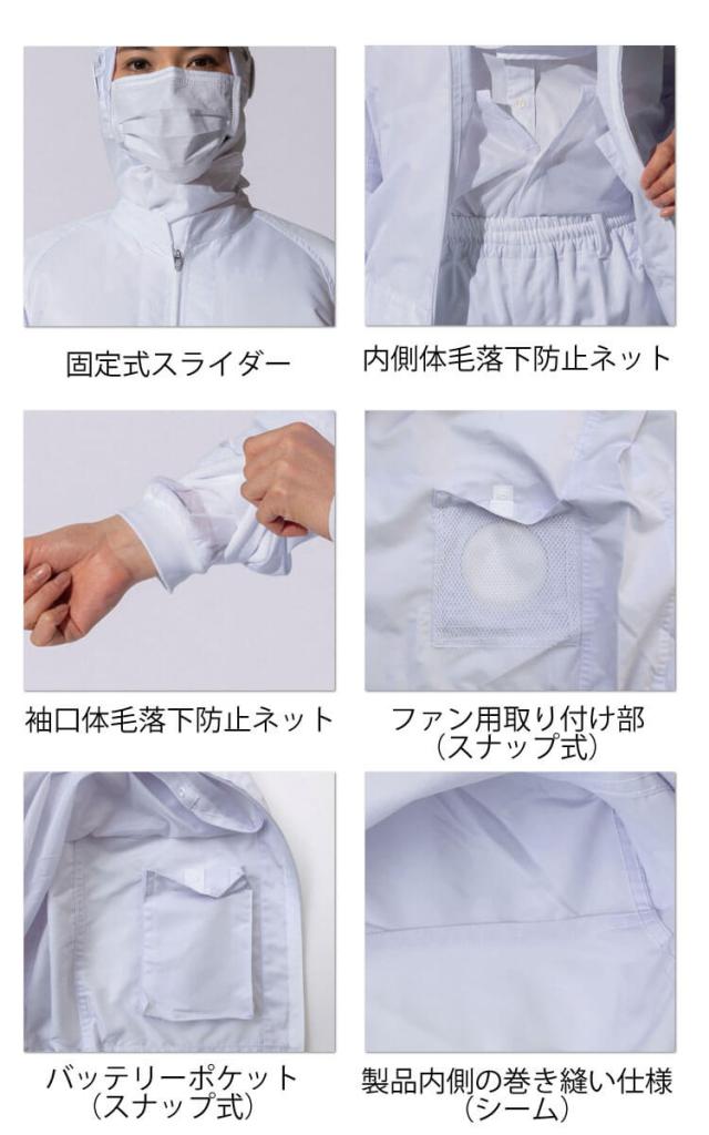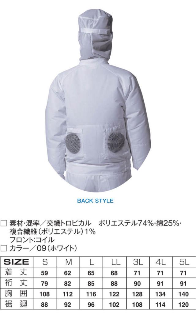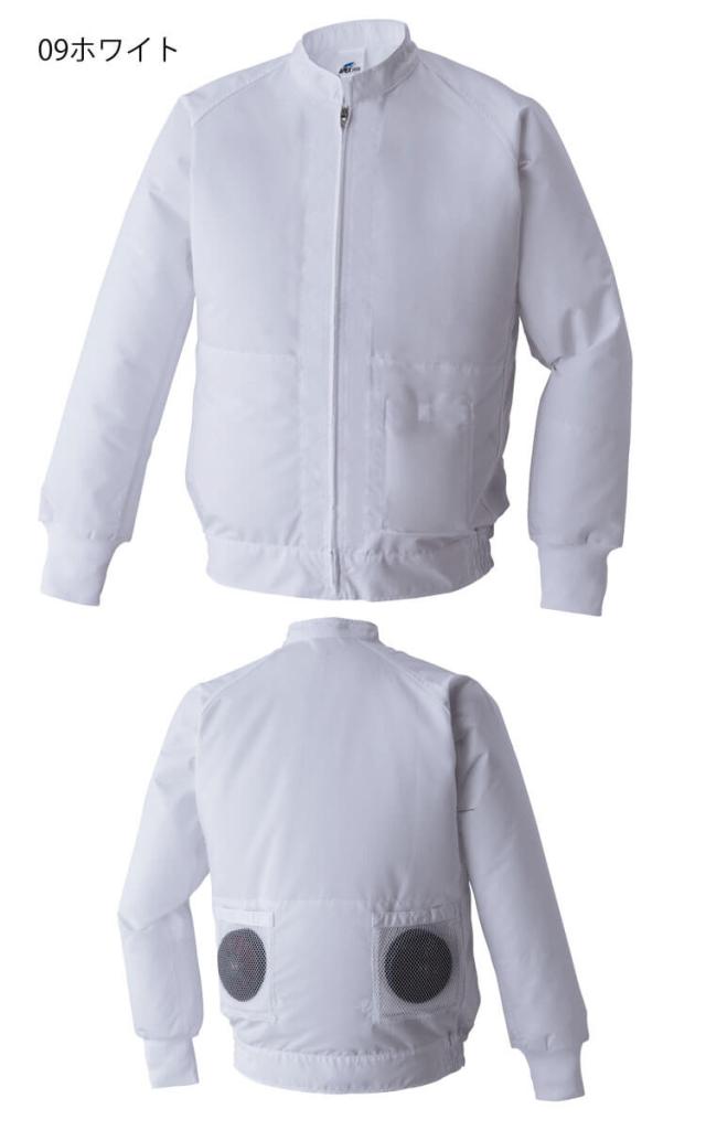 [4月中旬入荷先行予約]空調風神服 白衣ブルゾン(ファンなし) 003 作業着 アタックベース 工場 白衣 食品加工 厨房ファン付き作業着