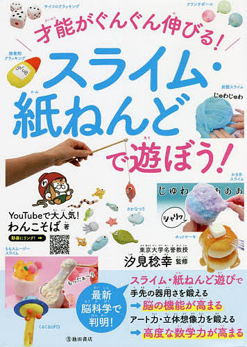 チャンネル登録者数60万人! スライムづくりのYouTube動画で超人気のクリエイター、わんこそばさんによる、みんな大好き「スライム」「ねんど」「紙ねんど」「クレイクラッキング」「スクイーズ」「プッシュポップ」「センサリーボトル」の作り方レシピ。新作動画ももりだくさん。YouTube動画では紹介されない材料や制作のコツがくわしく載っているので、だれでもじょうずに作れる! 教育学の観点から、汐見稔幸・東京大学名誉教授による「脳の発達に効く」解説も掲載。