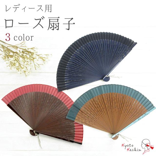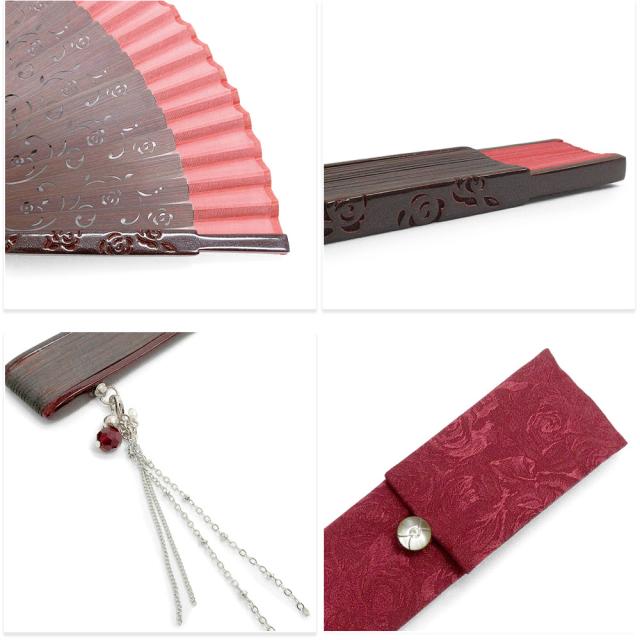 扇子 レディース ローズ 袋付き 女性用 上品 おしゃれ ギフト プレゼント 母の日 敬老の日 短地 透かし彫り パール塗 染骨 シルク 綿 バラ 薔薇 花 クリムソン ボルドー ワイン 赤 紫 ネイビー 紺 緑 ターコイズ かわいい 雑貨 夏小物 浴衣 夏祭り 箱入り