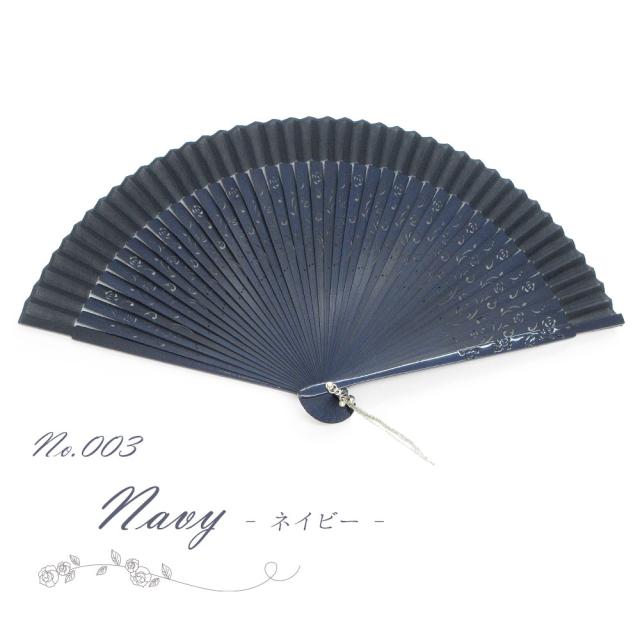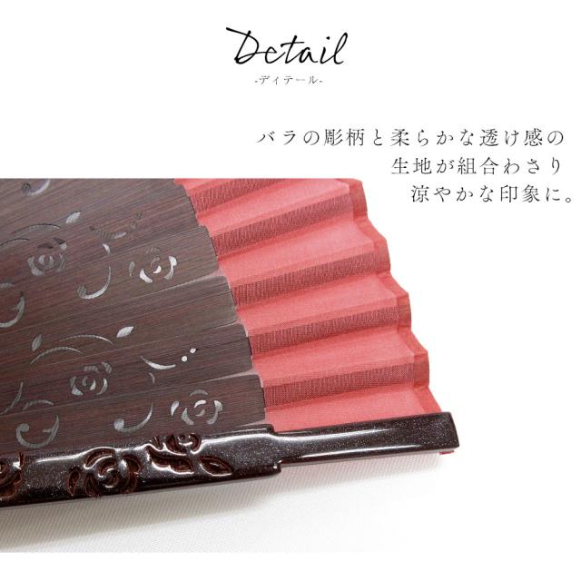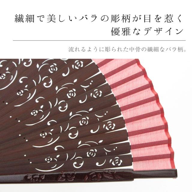 中骨の繊細で美しいバラの彫柄が目を惹く優雅なデザイン。