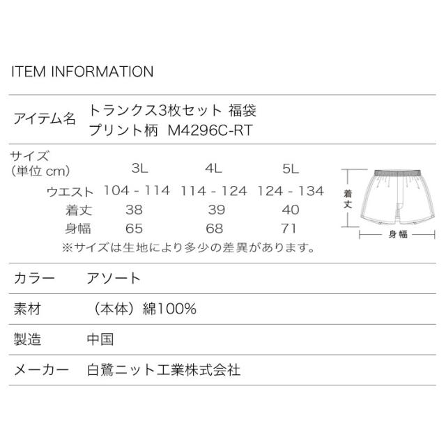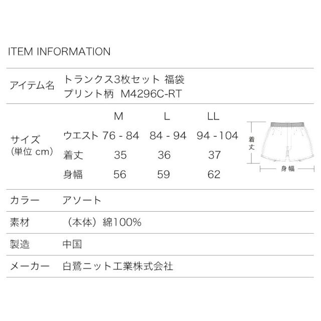 メンズ インナー トランクス Aセット 3枚組 福袋 年間 プリント柄 パンツ 下着 前開き おしゃれ 綿100% アウトレット 男性 M4296C-RT 送料無料