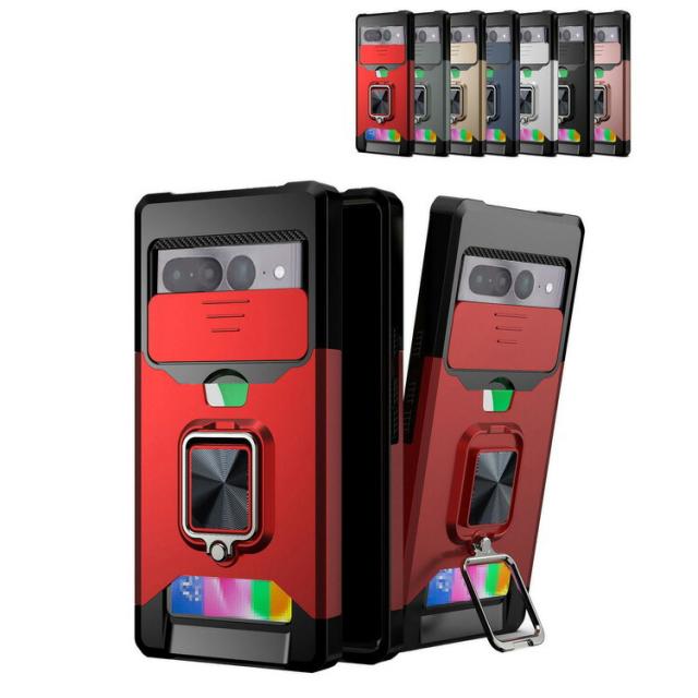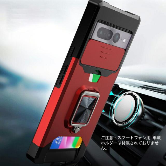 Google Pixel 7 ケース 耐衝撃 カバー Pixel7 Pro 一体型スマホリング付き カメラレンズカバー スタンド機能 リング付き 2重構造 グーグル ピクセル 7/7プロ スライド式カメラカバー