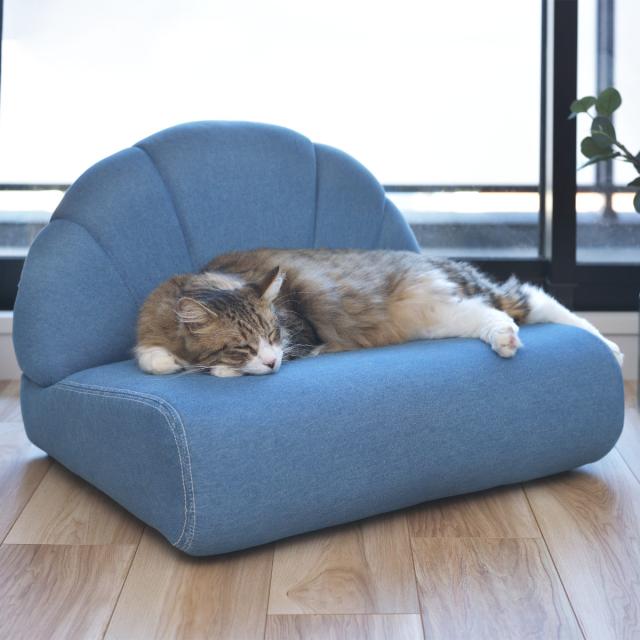 ペットソファ 幅59cm ファブリック 貝殻 ( ペットベッド 座椅子 ローソファー キッズチェアー 1人用 椅子 イス ペット 犬 猫 デニム調 シンプル かわいい おしゃれ 座面高18cm )