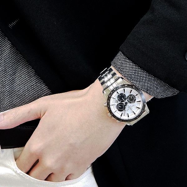 ブラックとホワイトを掛け合わせた通称パンダカラーは、さわやかさとトレンド感をプラスし、多針モデル特有のメカニカルなデザインも男心をくすぐります。また、2万円以下の腕時計としては、コストパフォーマンスが非常に高く、多くの方からご支持を頂戴している大人気のモデルとなっています。