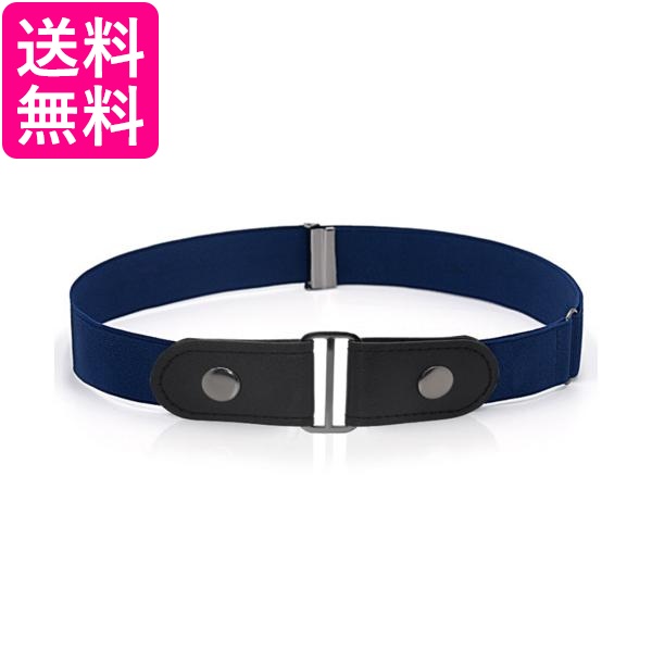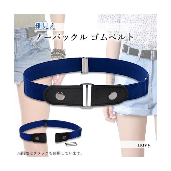ゴムベルト ベルト ノーバックルベルト フリーサイズ 男女兼用 細魅せ 長さ調節可能 ネイビー (管理S) 送料無料