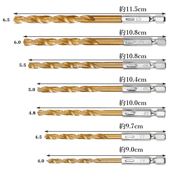 ・チタンコーティング仕上げのドリルビット13本セットです。