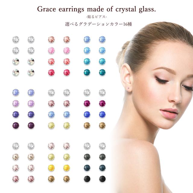 grace貼るピアス シンプルジュエリー グラデーションカラー シルバー土台 4セット 選べるカラー 貼り替えテープ付き 送料無料 クリスタルガラス使用 全16色 ノンホールピアス 日本製 パール シールピアス レディース イアリング シールピアス 日本製