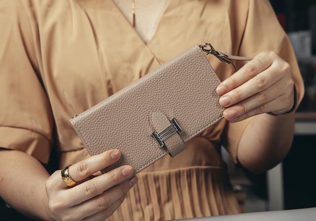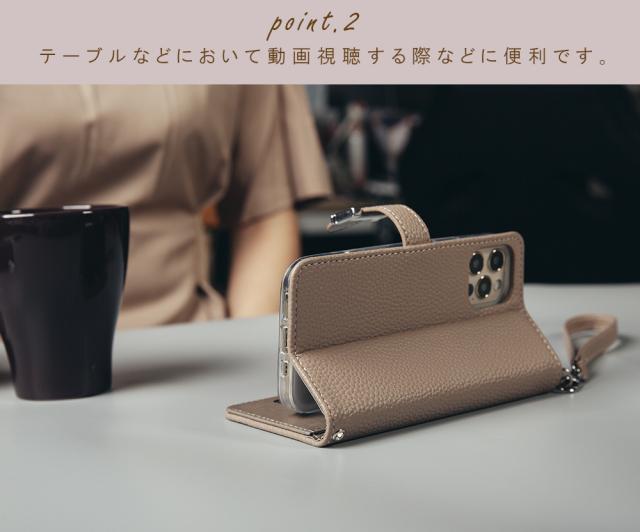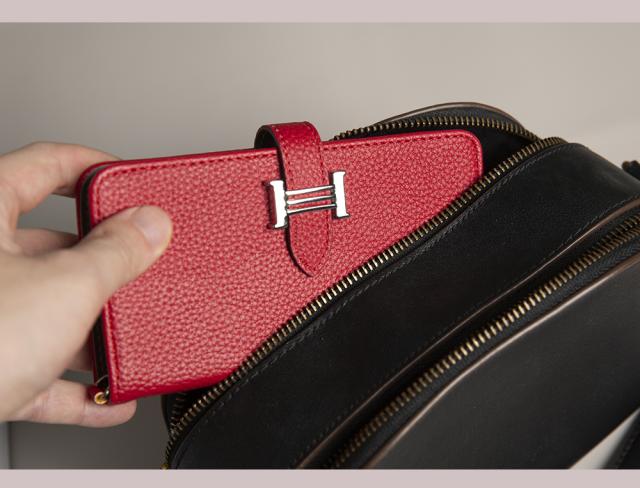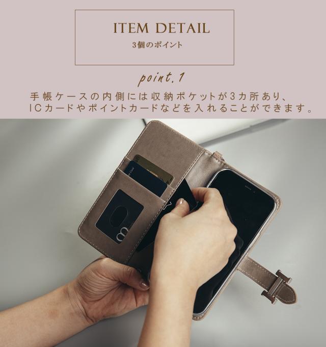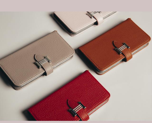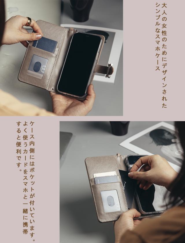 *大人の女性のためにデザインされたシンプルなスマホケース。ケース内側にはポケットがついています。よく使うカードをスマホと一緒に携帯すると便利です。