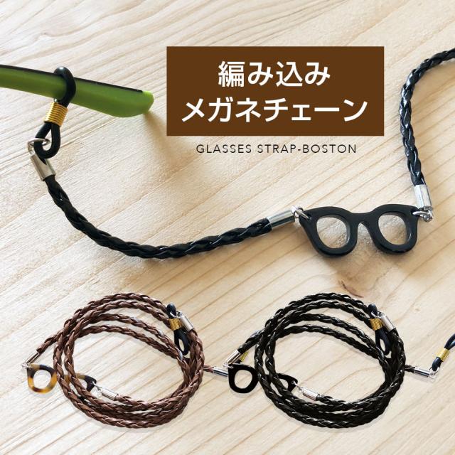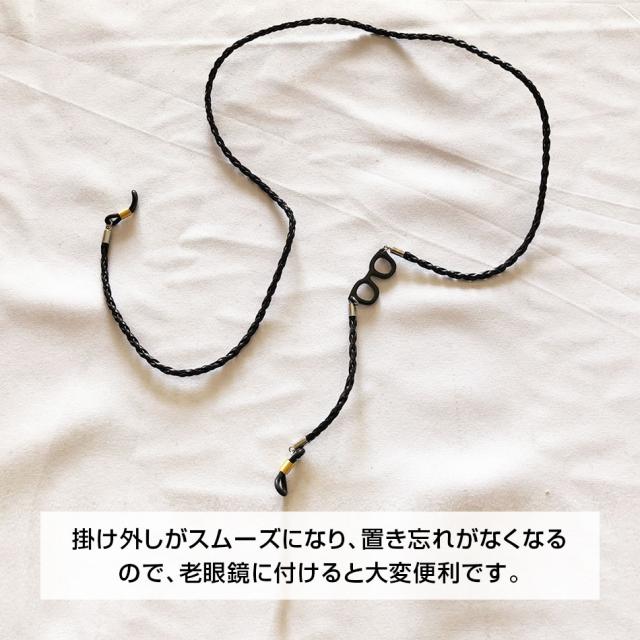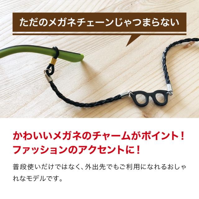 眼鏡チェーン レザー調 編み込み チャーム付き ストラップ