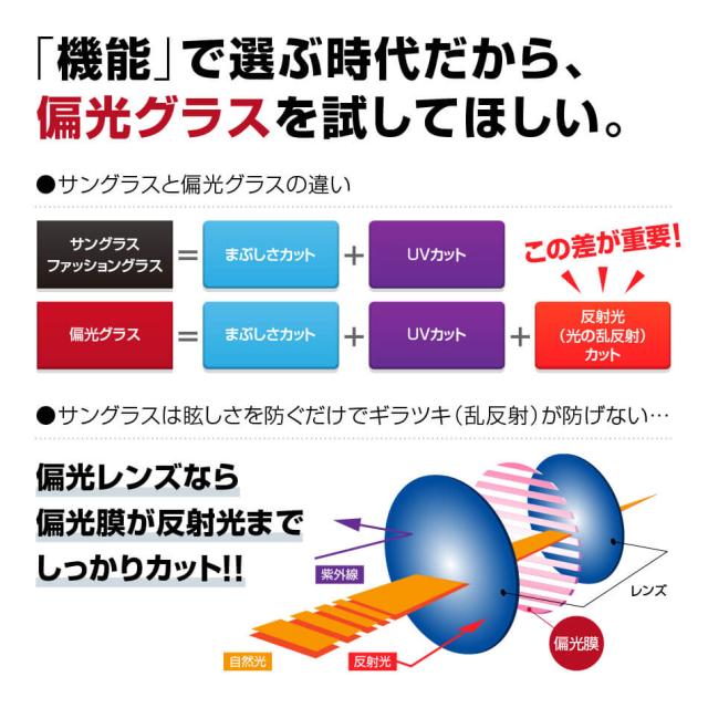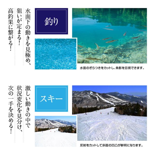 紫外線や反射光(ギラツキ)をカット。水面、路面、雪面の反射をカットします!