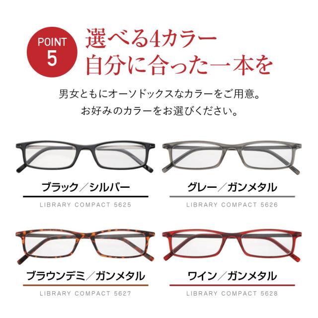 老眼鏡 ライブラリーコンパクト ウルトラスリム リーディンググラス リーディンググラス ブルーライトカット おしゃれ レディース メンズ 男性用 女性用 全4色 1.00 1.50 2.00 2.50 3.00 3.50