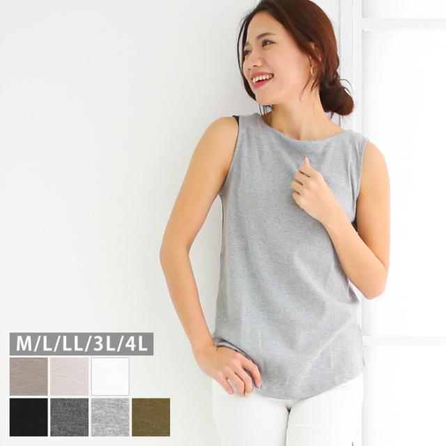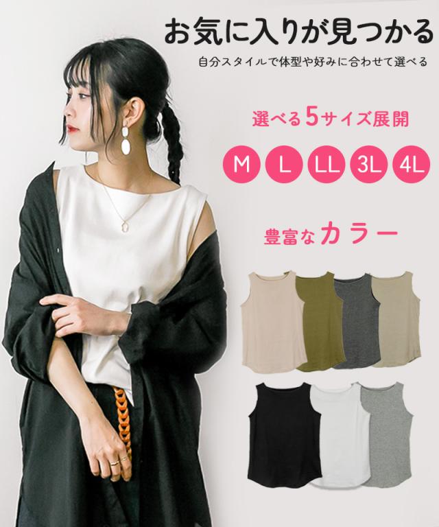 秋新作 大きいサイズ レディース ボートネックタンクトップ タンクトップ M L LL 3L 4L レディース 大きいサイズ 黒 白 グレー ベージュ カーキ ピンク