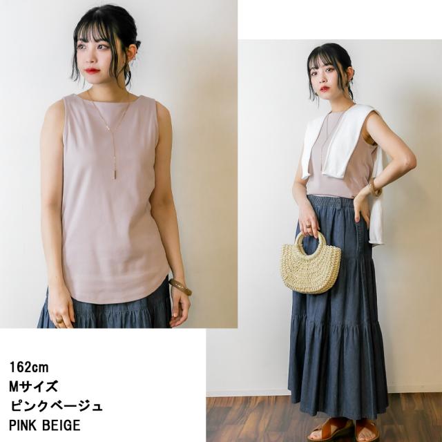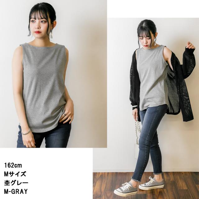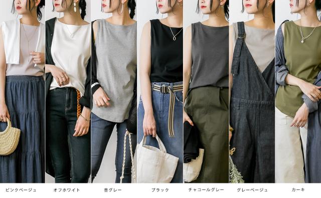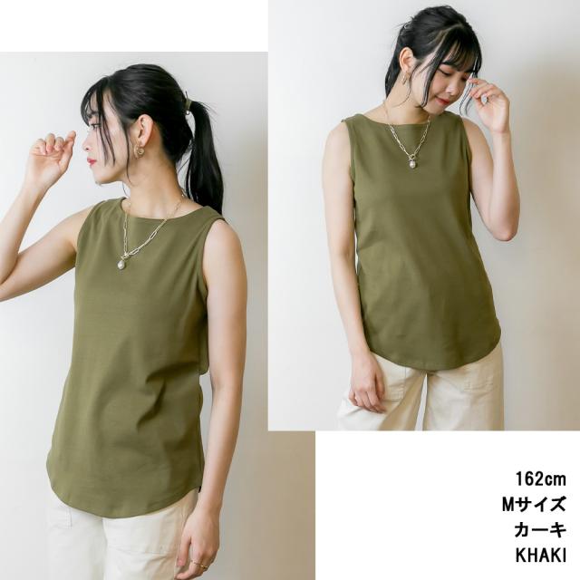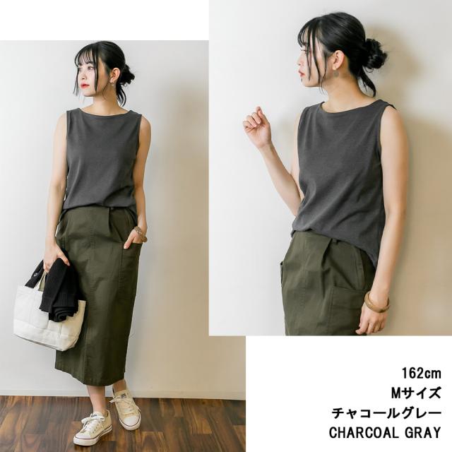 シンプルながらも、上品な着こなしが叶うボートネックタンクトップ♪首元を美しく、程よい開き具合が女性らしさを引き立て魅せるデザインです。襟元はしっかりとした作りに仕上げました。コットン100%(杢グレー・チャコールグレーのみ異素材MIX)の厚手生地で、透けにくいのが嬉しいポイント。また、適度なゆとりがあり、リラックス感のある着こなしが可能。ジャストサイズで着たい方はワンサイズ下を選ぶのもおすすめです。カラー展開は7色。ピンクベージュはやや白寄りのベージュで、落ち着いた印象に。チャコールグレーは多少の色落ちがあっても気になりにくく、長く愛用できるカラーです。夏は一枚で、春秋はシャツやカーディガンと重ね着して、3シーズン活躍♪ ボートネックならではの肩ひものチラ見え対策として、インナーを工夫するとより快適に着用できます。シンプルだけど計算されたシルエットで、どんなボトムスとも相性抜群!大人のカジュアルコーデにぴったりな一枚です。