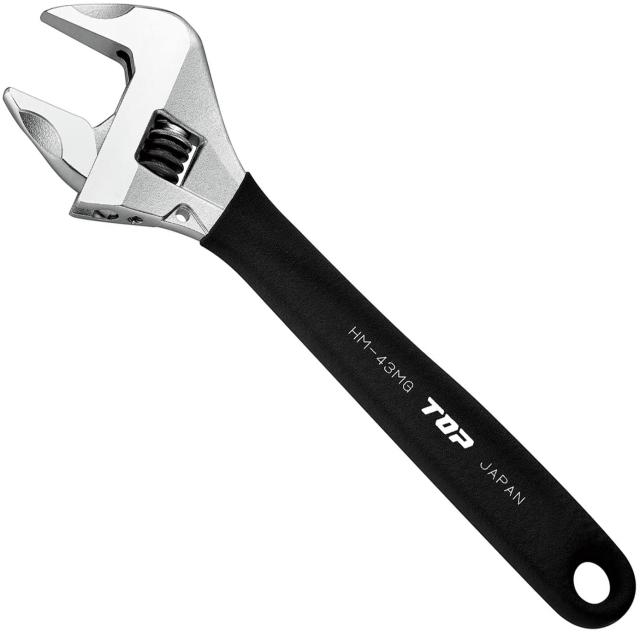 TOP工業(トップ工業) ワークワイド グリップ付 ブラック (ガタ無しモンキレンチ) 口開き0〜43mm HM-43MGBK 1個