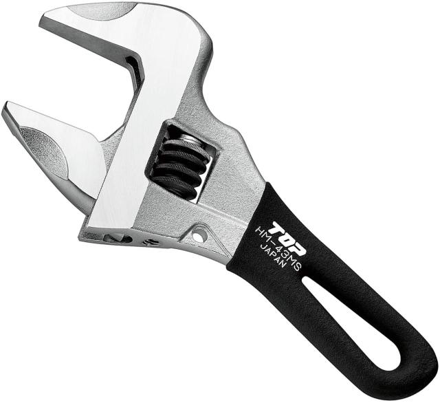 TOP工業(トップ工業) ショートワークワイド グリップ付 ブラック (ガタ無しモンキレンチ) 口開き0〜43mm HM-43MSBK 1個