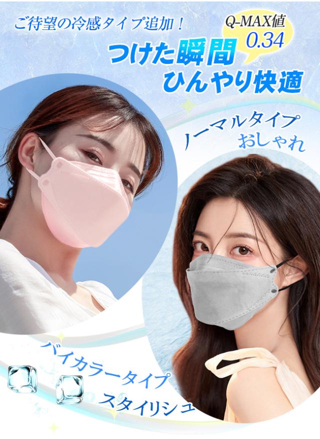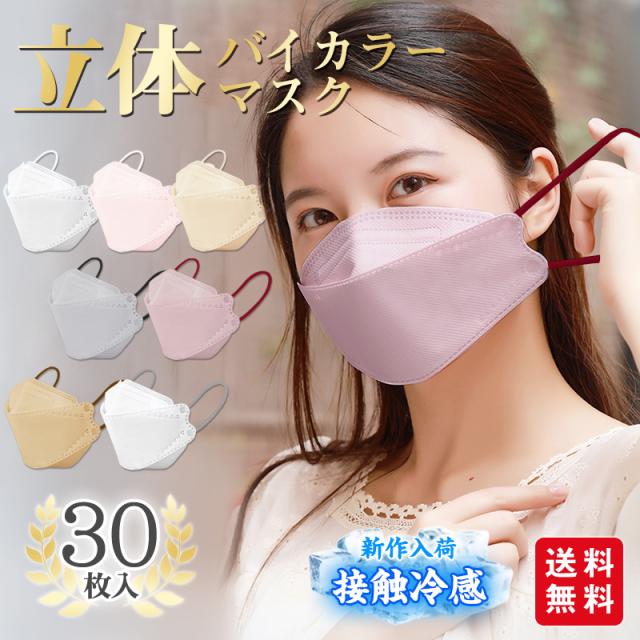 冷感マスク バイカラーマスク 小顔3Dマスク 立体マスク 30枚入 不織布マスク 息がしやすい くすみカラー 小顔 パステルカラー 小さめ 4層 口紅が付きにくい バイカラー 着用快適