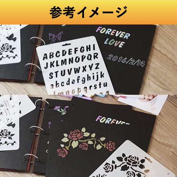 ステンシルシート アルファベット 文字 大型 花 図案 数字 小文字 ステンシルプレート はな 12枚組 ステンシルプレート 製図