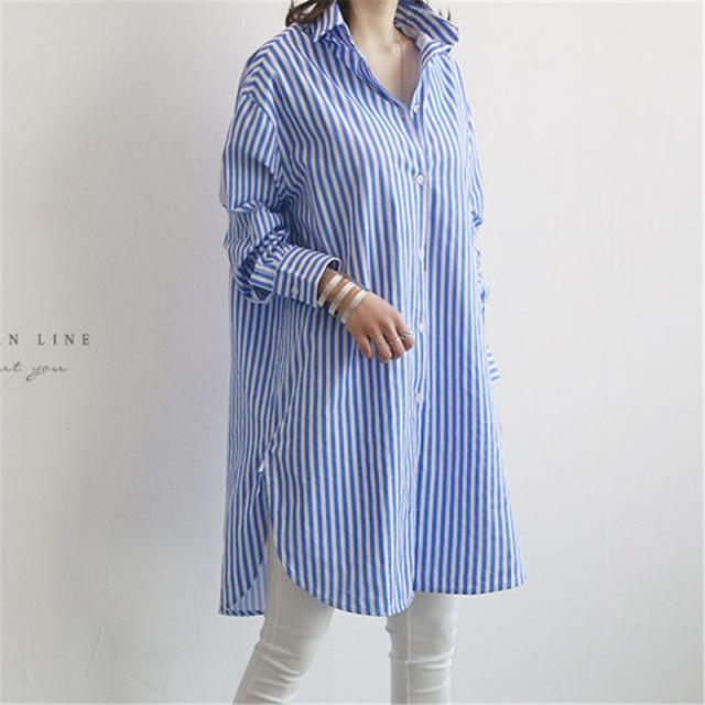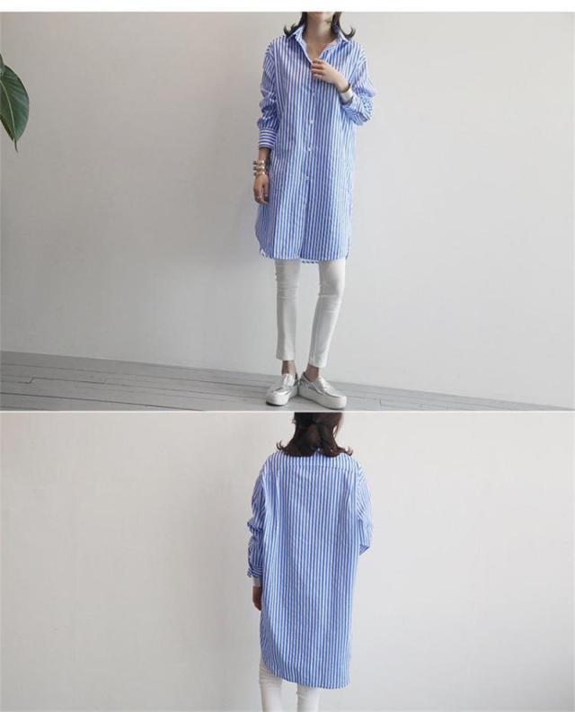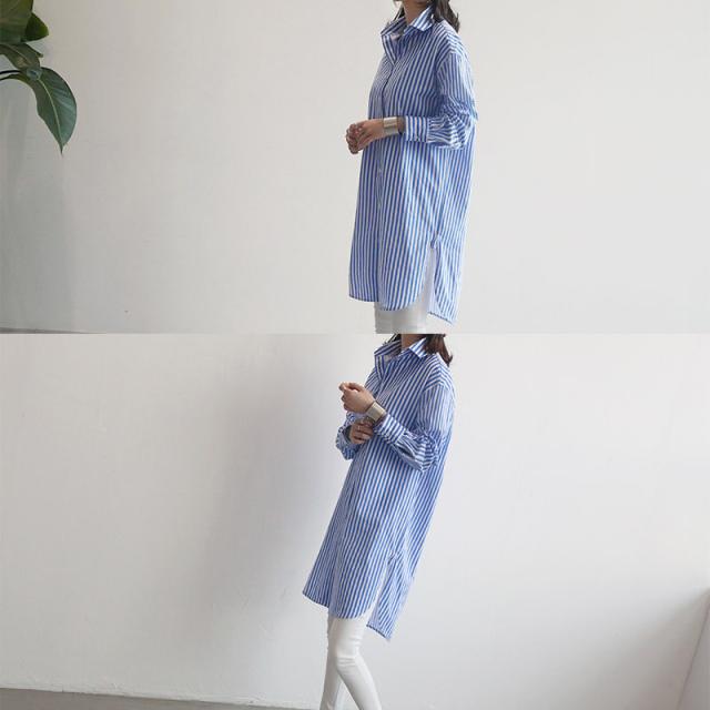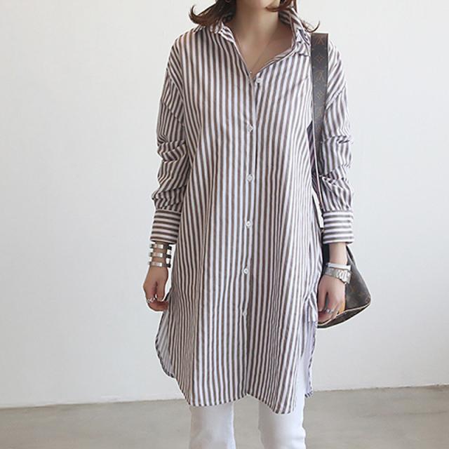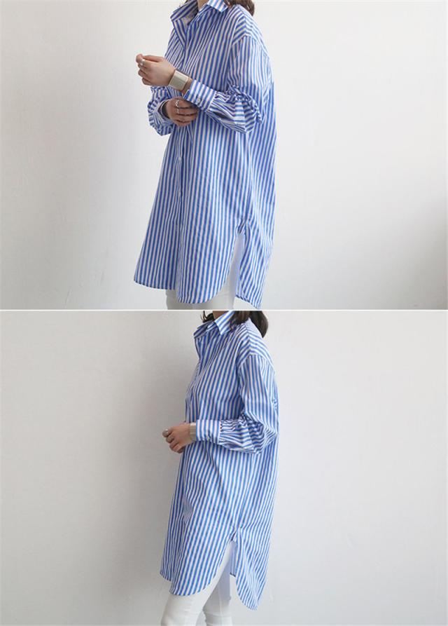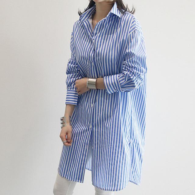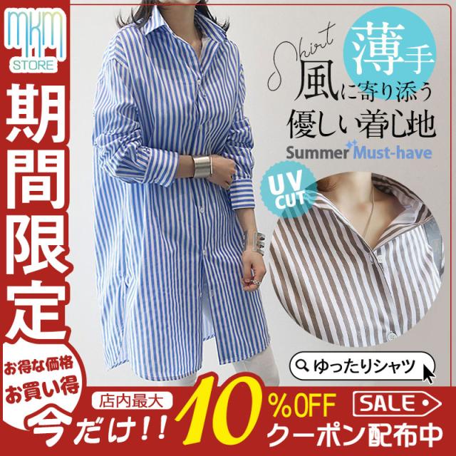 【水曜日まで!10%クーポン配布中】 シャツ レディース ロング 長袖 ブラウス ロングシャツ カーディガン ストライプ シャツワンピース 春 夏 春服 夏服 チュニッ