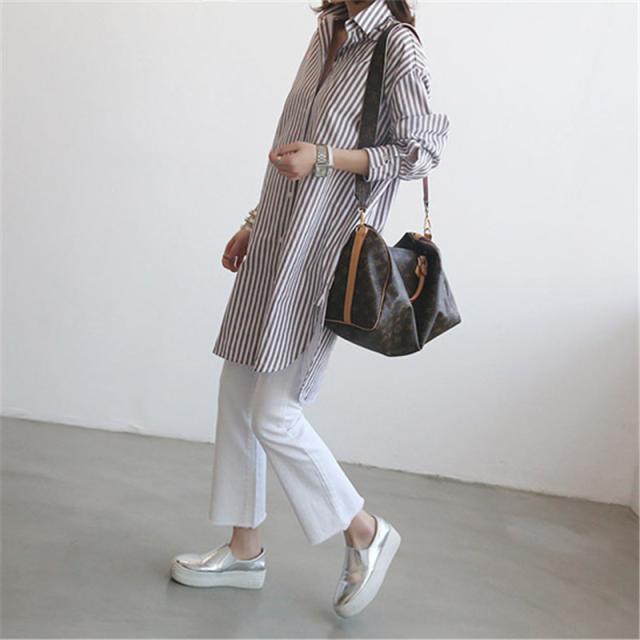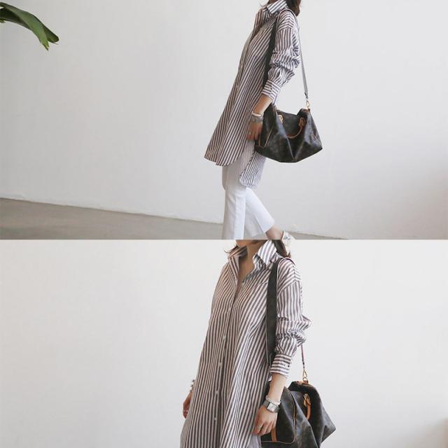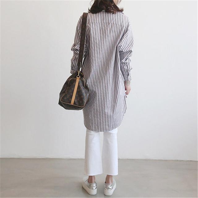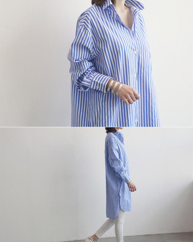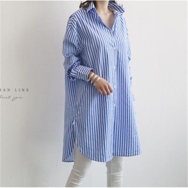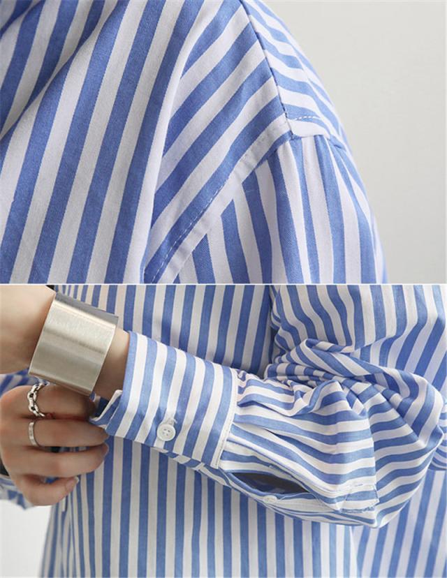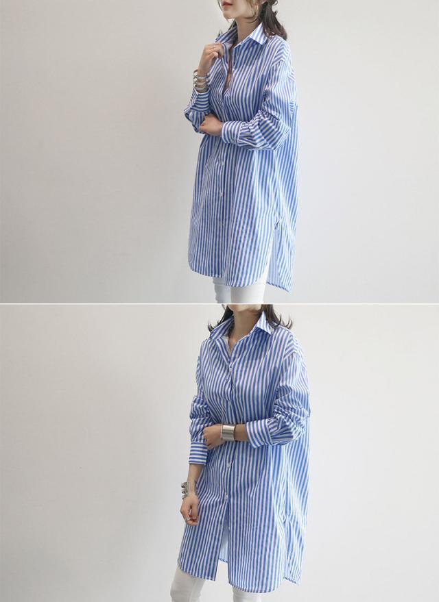 【水曜日まで!10%クーポン配布中】 シャツ レディース ロング 長袖 ブラウス ロングシャツ カーディガン ストライプ シャツワンピース 春 夏 春服 夏服 チュニッ