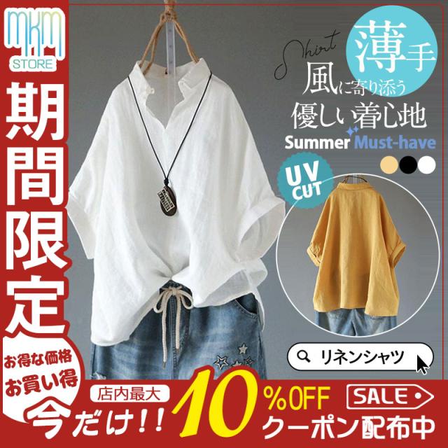 【水曜日まで!10%クーポン配布中】 シャツ レディース tシャツ 半袖 ブラウス リネン ゆったり 大きいサイズ 夏 春服 夏服 きれいめ トップス カットソー カジ