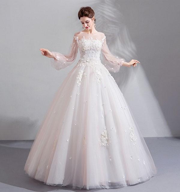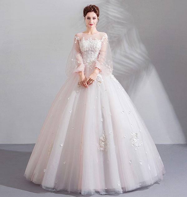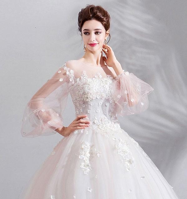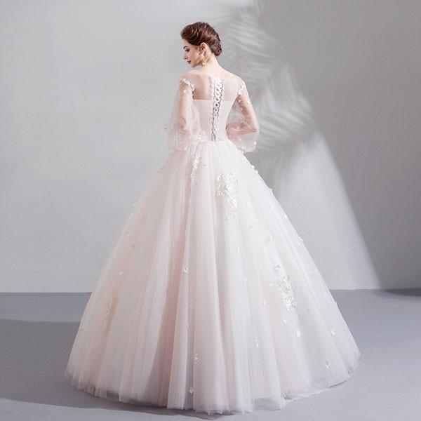 花嫁 ウェディングドレス イリュージョンネック プリンセスライン 白ドレス 花柄 ワンピース プリンセス かわいい シンプル 結婚式 披露宴 前撮り 後撮り 撮影用 フォトウェディング 小柄 小さいサイズ 大きいサイズ ロングドレス da151n1n1l9