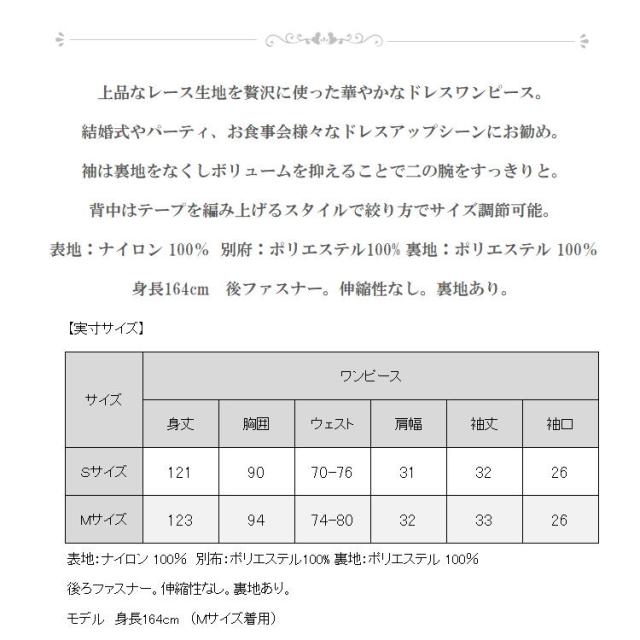 上品なレース生地を贅沢に使った華やかなドレスワンピース。