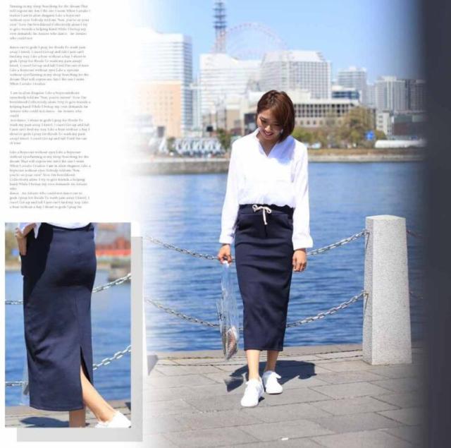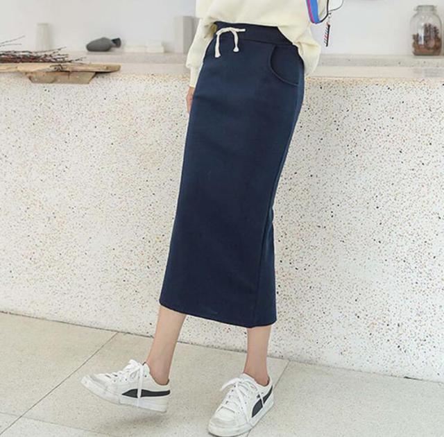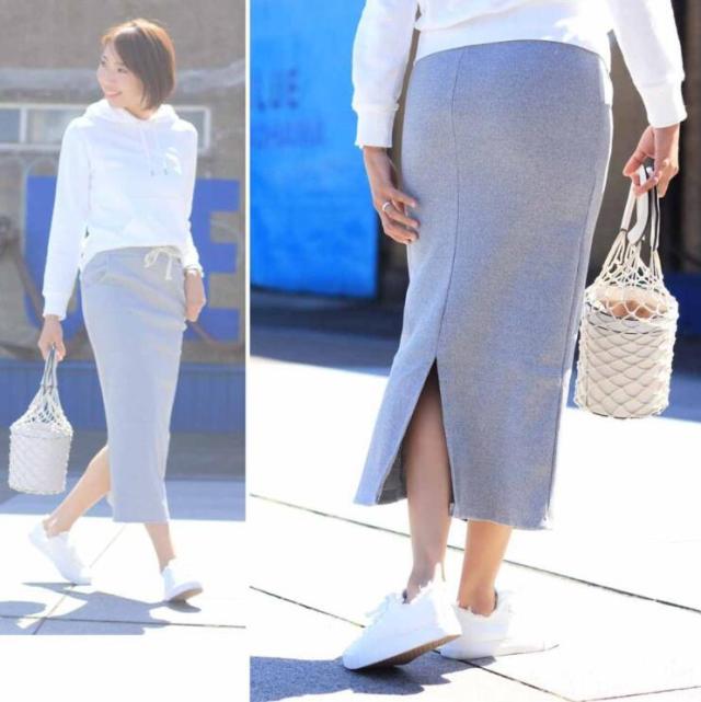 程よい厚みのリブ素材がロングシーズン着用を可能にするロング丈タイトスカート