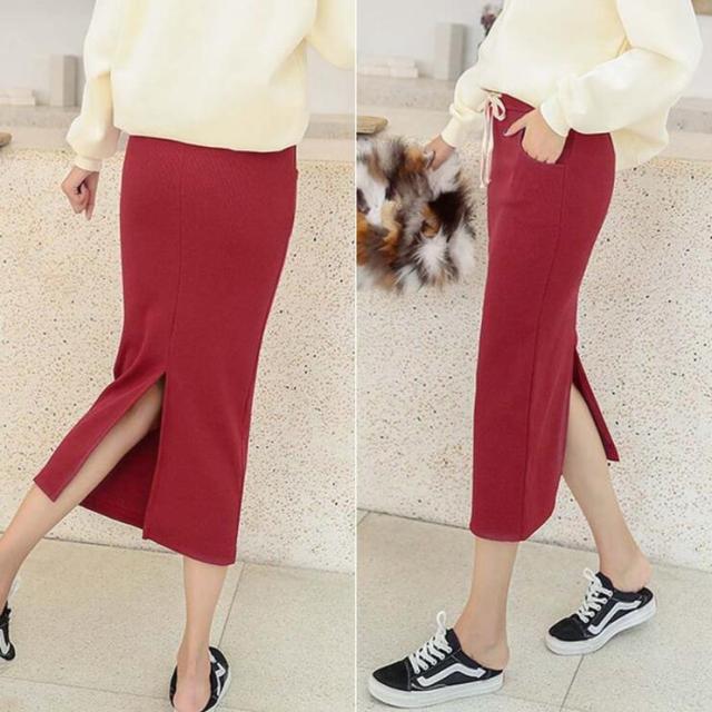 ロングスカート タイトスカート ミモレ丈スカート リブスカート スリット スカート