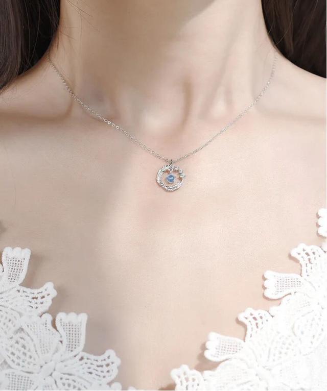 月ネックレス 天使のウィンク 1粒ネックレス 幸運ネックレス スワロフスキー ネックレス人気 シルバー レディースネックレス ネックレス人気 金属アレルギー対応 ロジウムプラチナ 仕上げ アレルギー対応 レディースアクセサリー