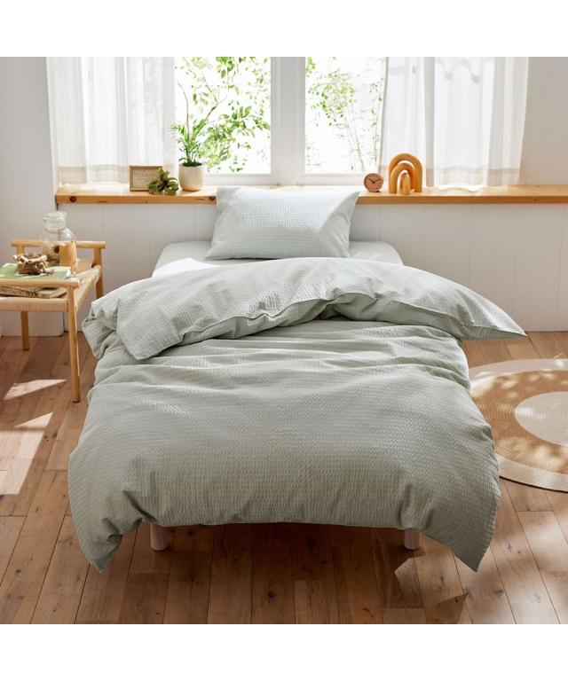 [keyword] インテリア 涼感 暑さ対策 夏 涼しい クール 手洗いOK 洗える 洗濯 洗濯機洗いOK マシンウォッシャブル 綿100% コットン100% 綿素材 綿 コットン 生地 無地 無地調 柄 かわいい おしゃれ ナチュラル ベーシック シンプル 定番 寝室 ベッドルーム 夏用 サマー 一人暮らし 大学生 社会人 ワンルーム 1K 1DK 新生活 春 秋 冬 [comment] 夏の定番素材でもあるシアサッカー!ポコポコとした凹凸がサラリと快適なシリーズです!優しい色合いがお部屋に馴染む掛け布団カバーです。