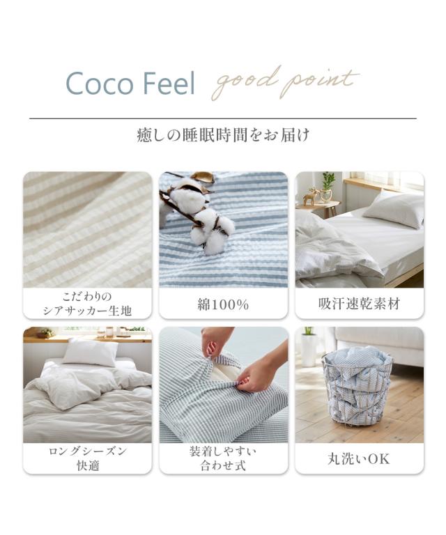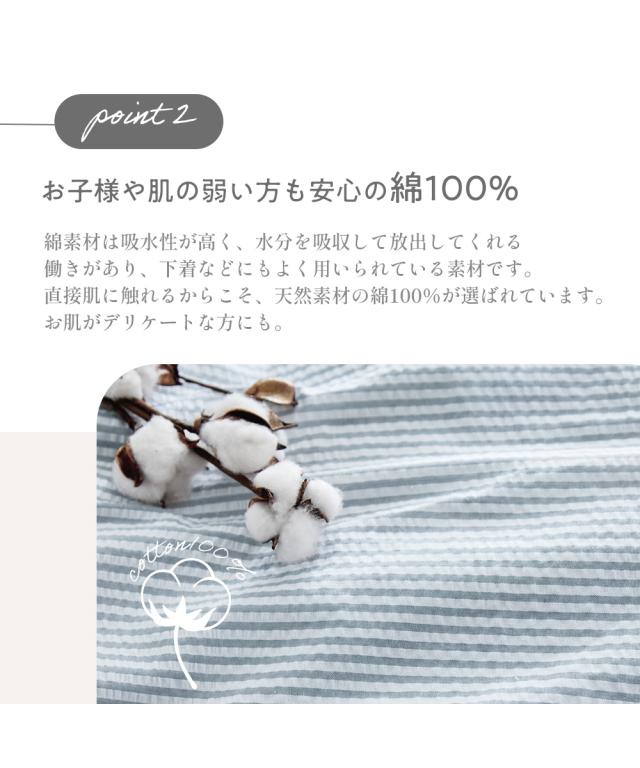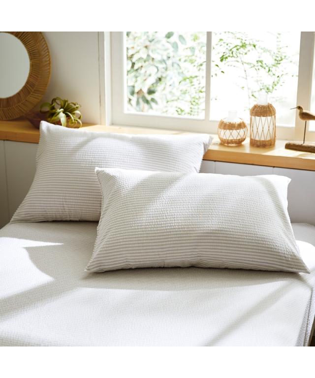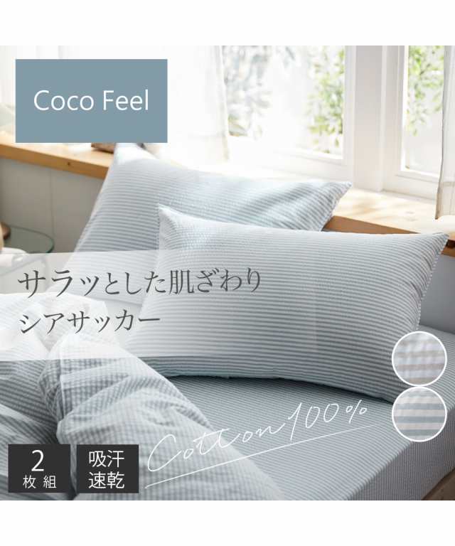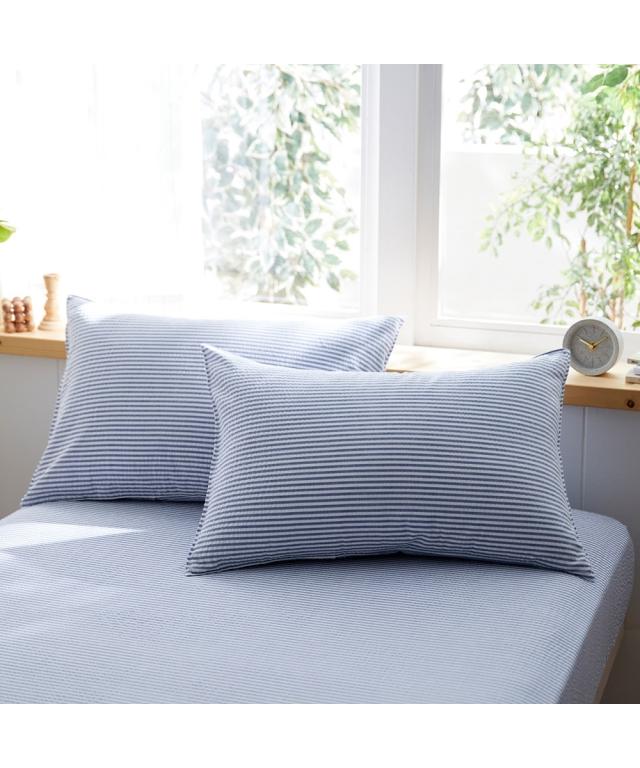 コットン100%シアサッカー枕カバー同色2枚組(Coco Feel)