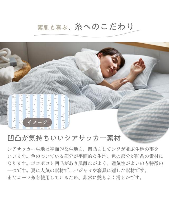 [keyword] カーテン ラグ 寝具 涼感 夏 外 おでかけ 洗濯機洗いOK 洗濯 綿100% 素材 無地 無地調 柄 かわいい おしゃれ ナチュラル ベーシック シンプル 定番 寝室 インテリア ベッドルーム 夏用 サマー 涼しい 一人暮らし 大学生 社会人 ワンルーム 1K 1DK 新生活 [comment] 夏の定番素材でもあるシアサッカー!ポコポコとした凹凸がサラリと快適なシリーズです!優しい色合いがお部屋に馴染む枕カバーです。