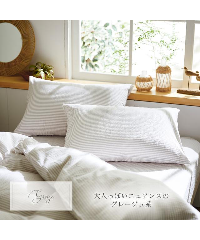 枕カバー コットン100% シアサッカー 同色2枚組 Coco Feel グレージュ系/ブルー系 43×63cm用 ニッセン nissen