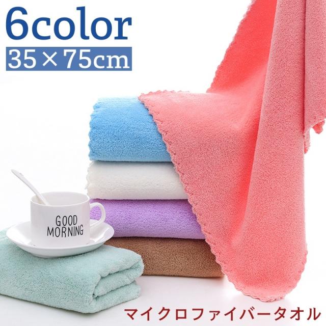 バスタオル マイクロファイバー 吸水タオル 35×75cm 無地 単色 シンプル 柔らかい ふんわり やわらか 吸水性 バス用品