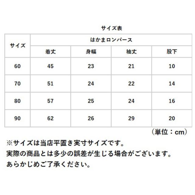 | サイズ | [ベビー] ・60cm ・70cm ・80cm ・90cm ※サイズについて詳細は、サイズ表をご覧くださいませ。 |
