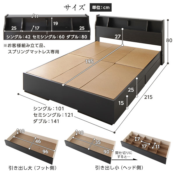 ・取り外し可能な間仕切り付き※ヘッド側の引き出しのみ